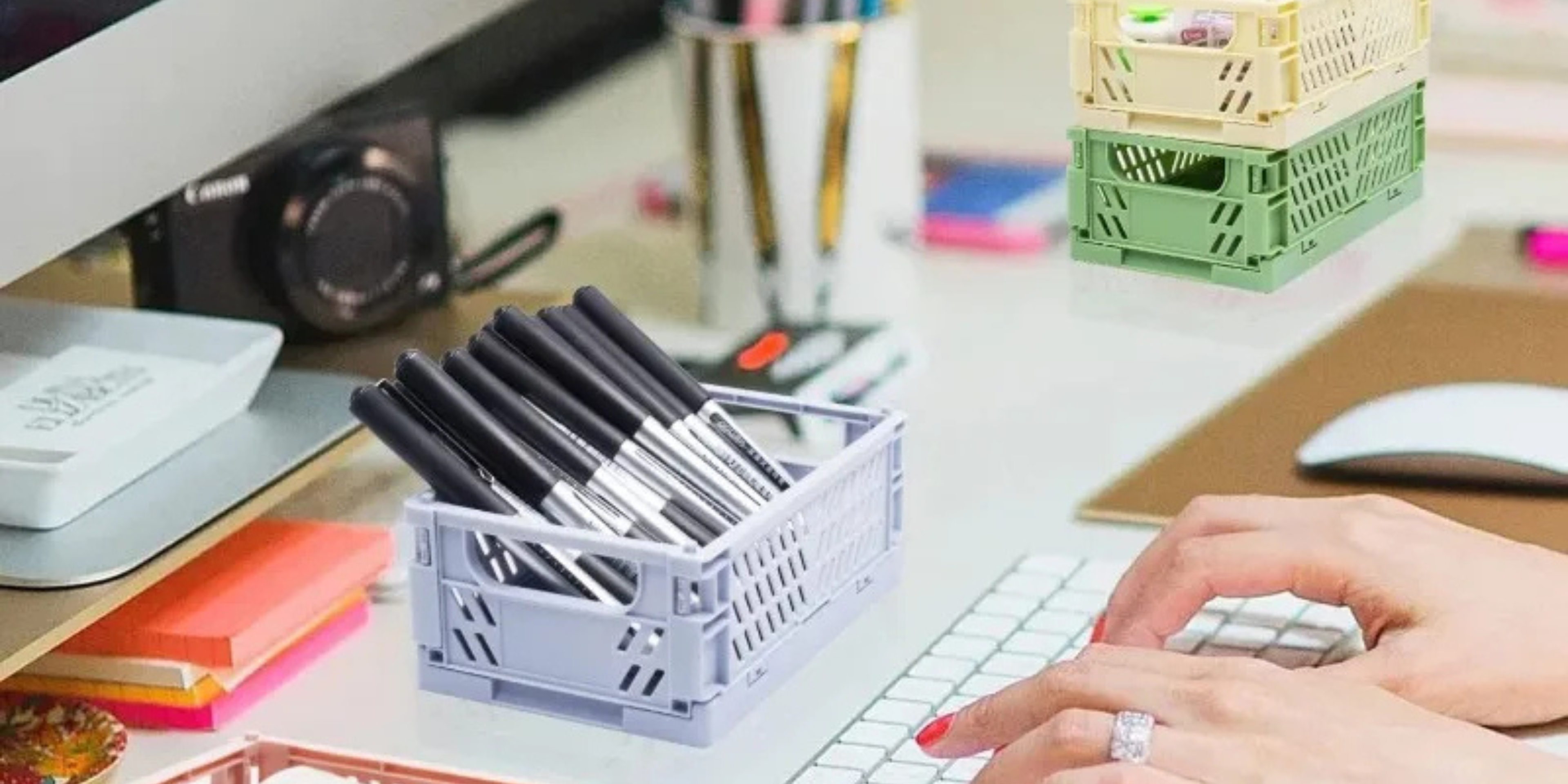 Plastic Foldable Storage Baskets – Stackable Organizer Boxes for Kitchen, Bathroom, Office & Desktop